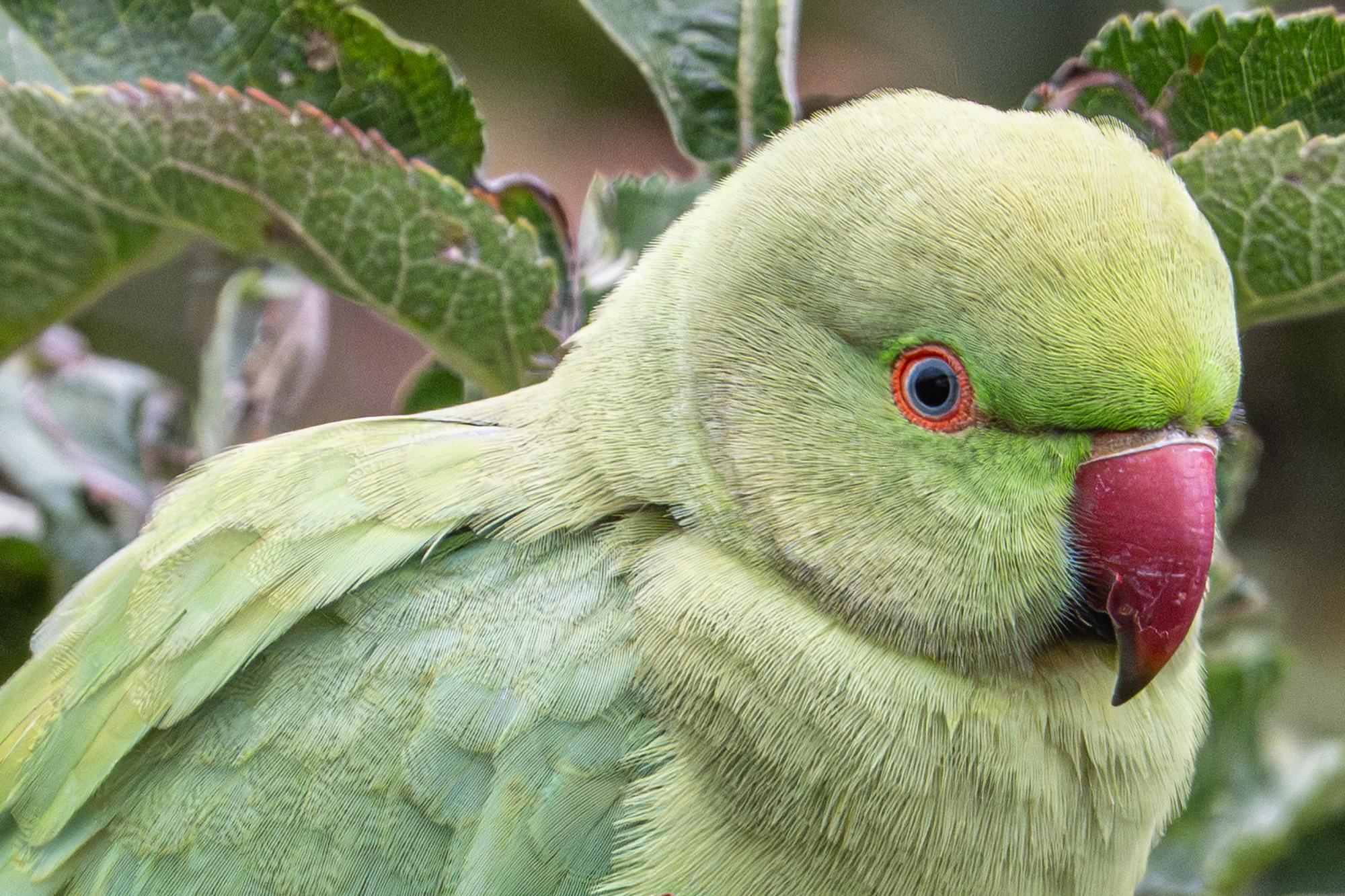 To see how far we could go with ISO with the help of denoising, this parakeet was photographed at ISO 6400 with the OM System OM-1 Mark II with the OM System Digital ED 150-400mm f/4.5 zoom at 400mm, and with the Sony Alpha A1 II with the Sony FE 400-800mm F/6.3-8 zoom at 800mm.