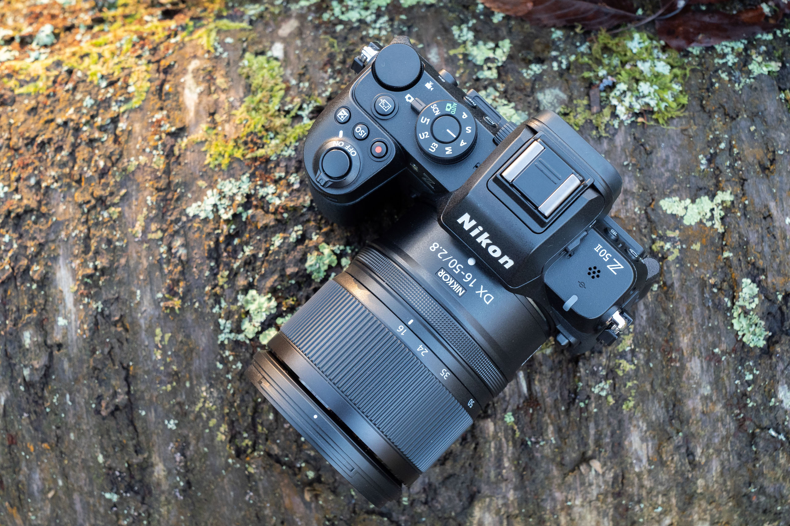 On the top of the camera, you’ll find the power switch surrounding the shutter button, a shutter speed dial, and a small button that engages magnified view. Focusing and aperture setting are both controlled by traditional rings on the lens barrel. On the back, there’s an electronic dial under your thumb that now operates both ISO and exposure compensation – clicking it inwards toggles between the two.