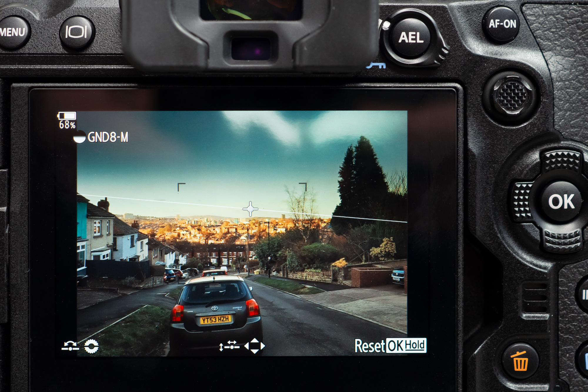 The new Live Grad ND filter gives you a number of options including GND2/GND4/GND8 (1,2,3EV), as well as soft, medium and hard filter type settings. Once switched on, you can move the position of the grad ND filter, as well as adjust the angle, with the display updating in real time so you can preview the settings. The front command dial gives quick adjustments, whereas the rear dial gives more precise adjustment, and you can also use the touchscreen to reposition the line.